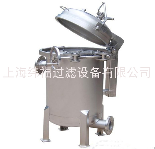 快開多袋式過濾器是一種壓力式過濾裝置,主要有過濾筒體、過濾筒蓋和快開機(jī)構(gòu)、不銹鋼濾袋加強(qiáng)網(wǎng)等主要部件組成,濾液由過濾機(jī)外殼的旁側(cè)入口管流入濾袋,濾袋本身是裝置在加強(qiáng)網(wǎng)籃內(nèi),液體滲透過所需要細(xì)度等級的濾袋即能獲得合格的濾液,雜質(zhì)顆粒被濾袋攔截。該機(jī)更換濾袋十分方便,過濾基本無物料消耗。
